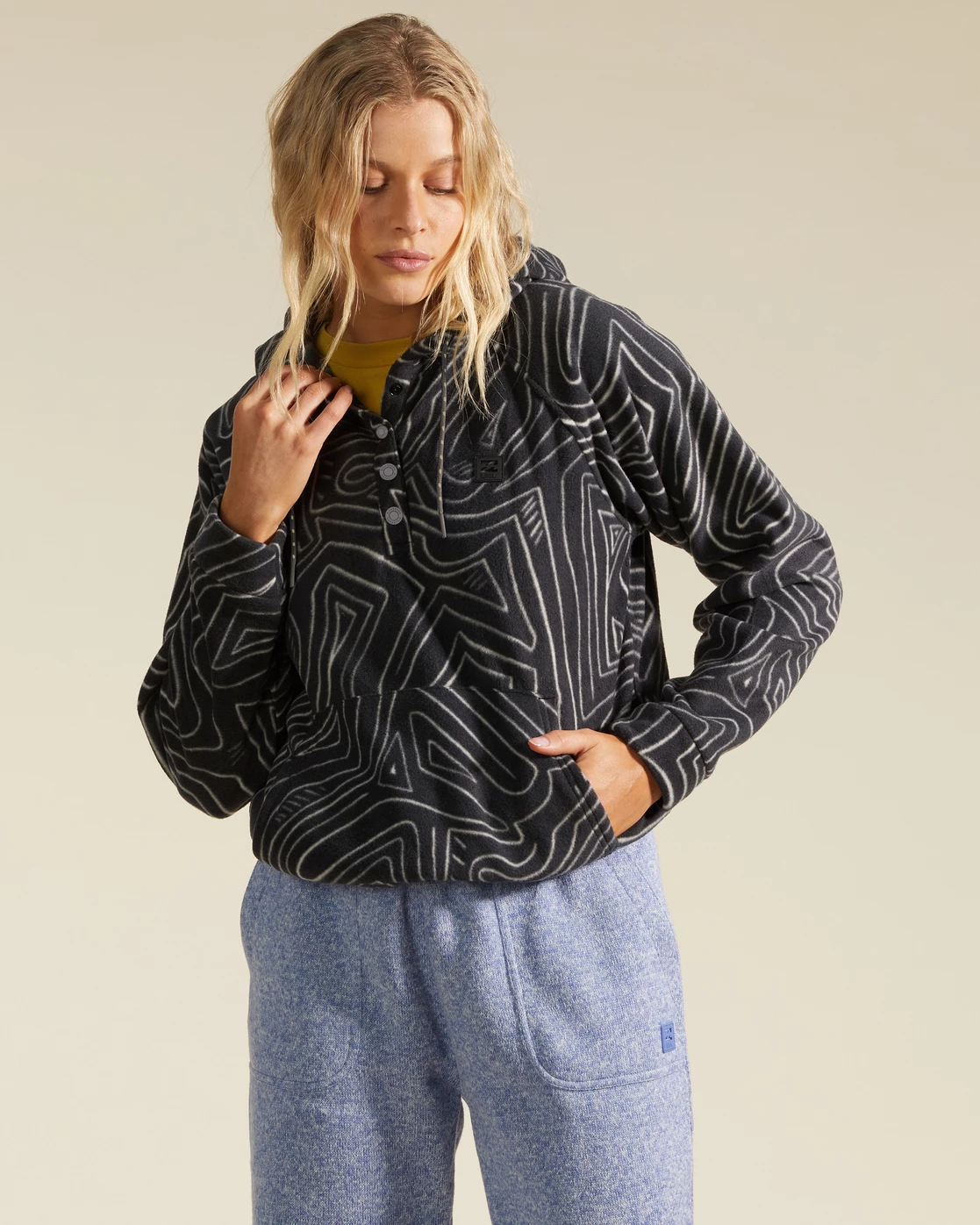 Dawn patrol sessions. Camping weekends with friends. Trips up the coast in search of the perfect wave. What do these have in common? They’re all great places for the Go Outdoors Hoodie. And this women’s hooded pullover sweatshirt from our Adventure Division Collection has its hand up to become your next travel buddy. The heavyweight fleece will have you feeling cozy and warm, while the rad print keeps your style on point. Plus, it’s waterproofed and reinforced with a snap closure at the neck and elastic at the bottom waist for extra protection against the cold. You’re next adventure is out there waiting— grab this essential and get out there.