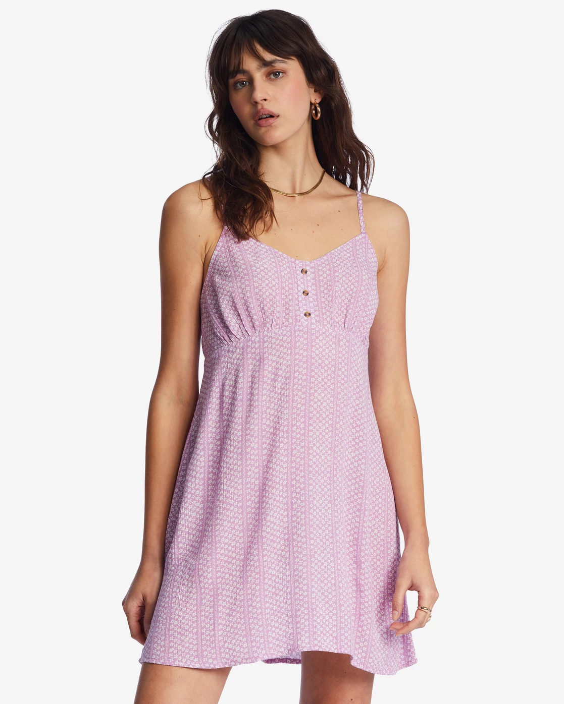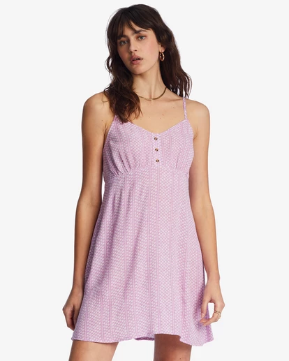 Made of airy crinkle fabric, this printed baby doll mini dress has a V-neck design that’s fitted at the chest and easy through the skirt.
