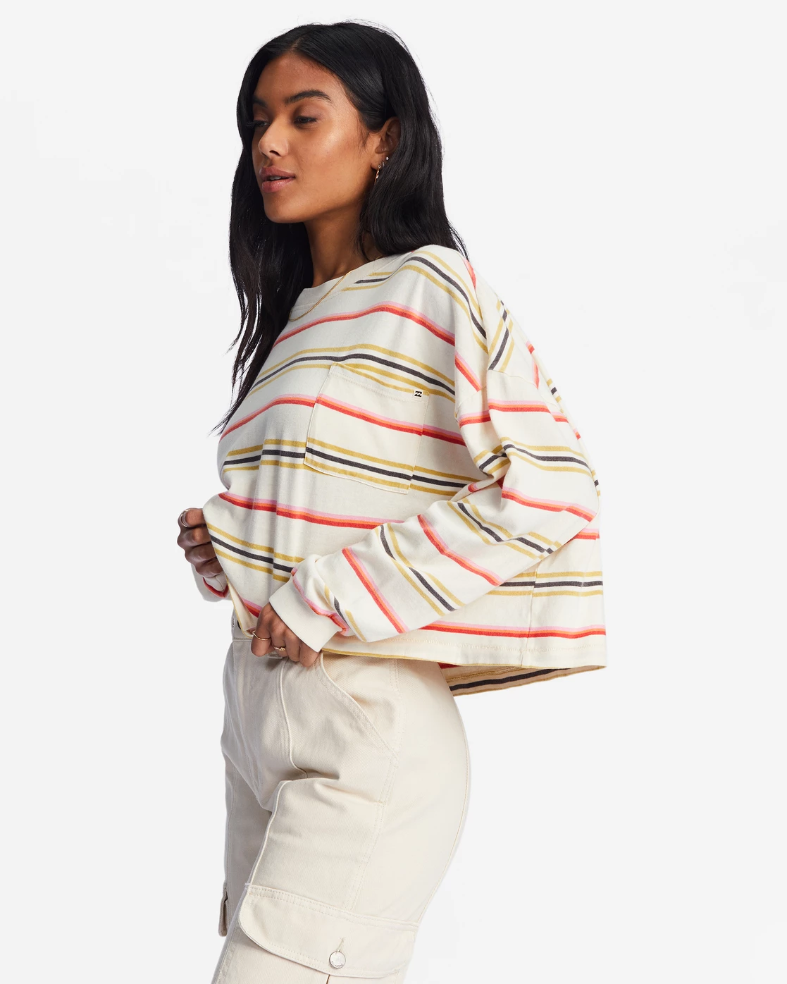 Billabong Beach Boyfriend Boxy Long Sleeve T-Shirt ANTIQUE WHITE (anw)