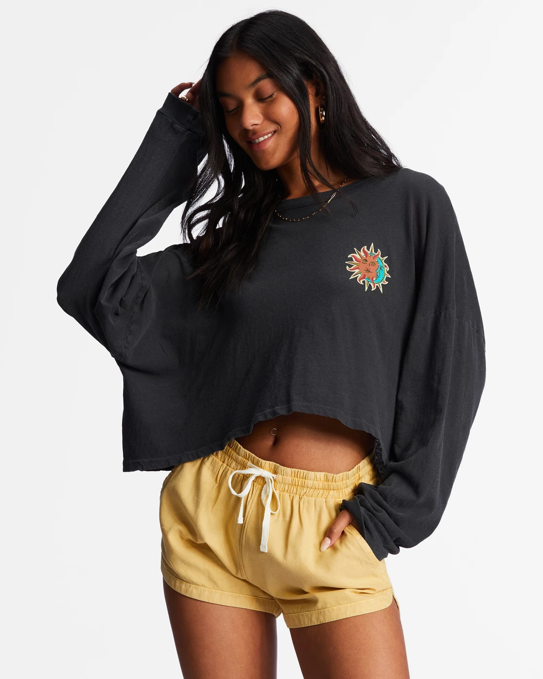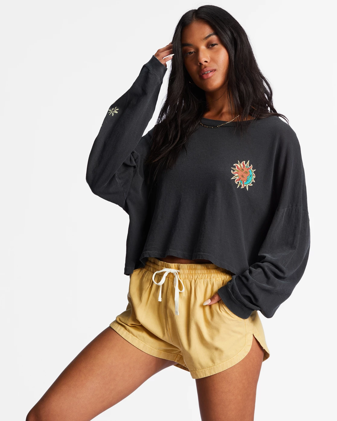 Billabong Beach Boyfriend Long Sleeve Crop Top BLACK SANDS (bsd)