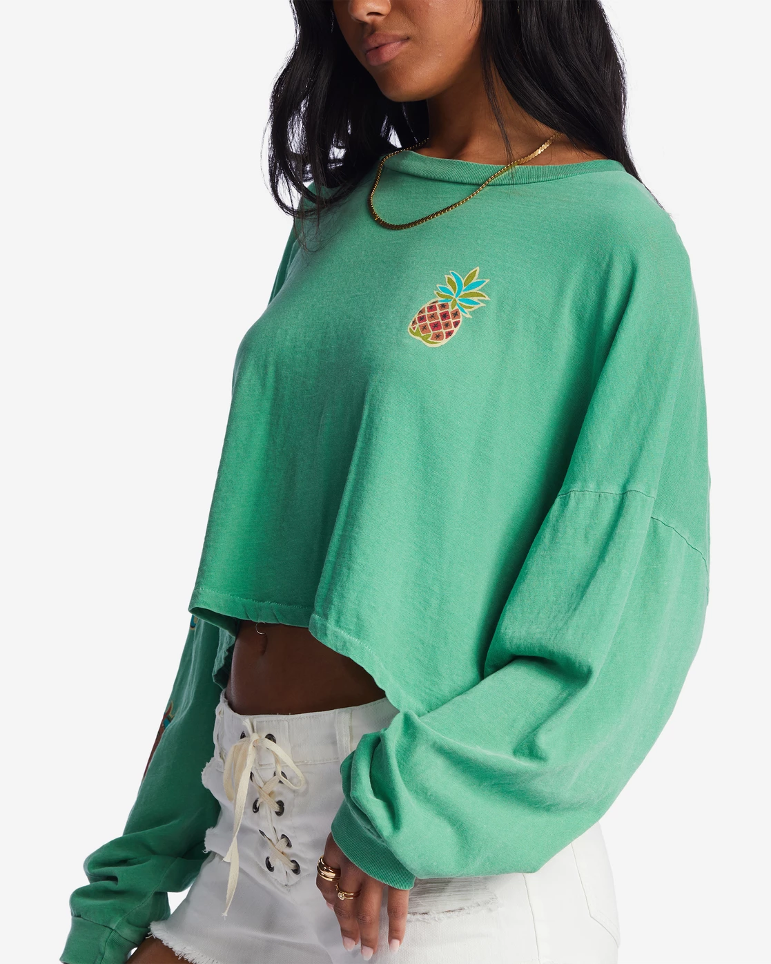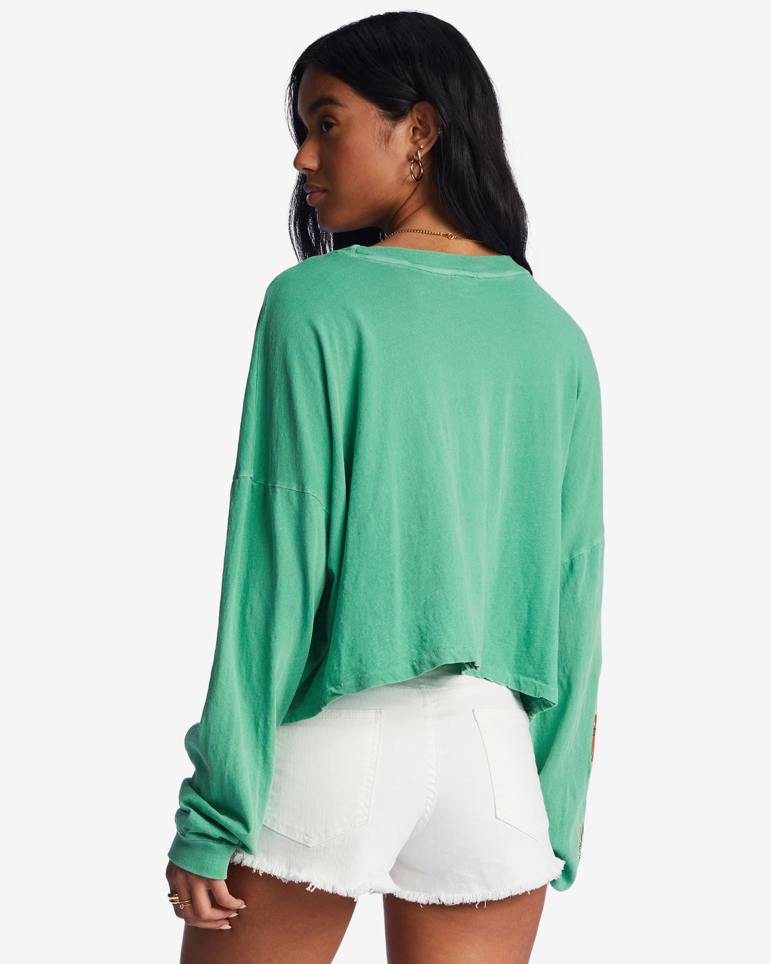 Billabong Beach Boyfriend Long Sleeve Crop Top SWEET GRASS (gkz0)