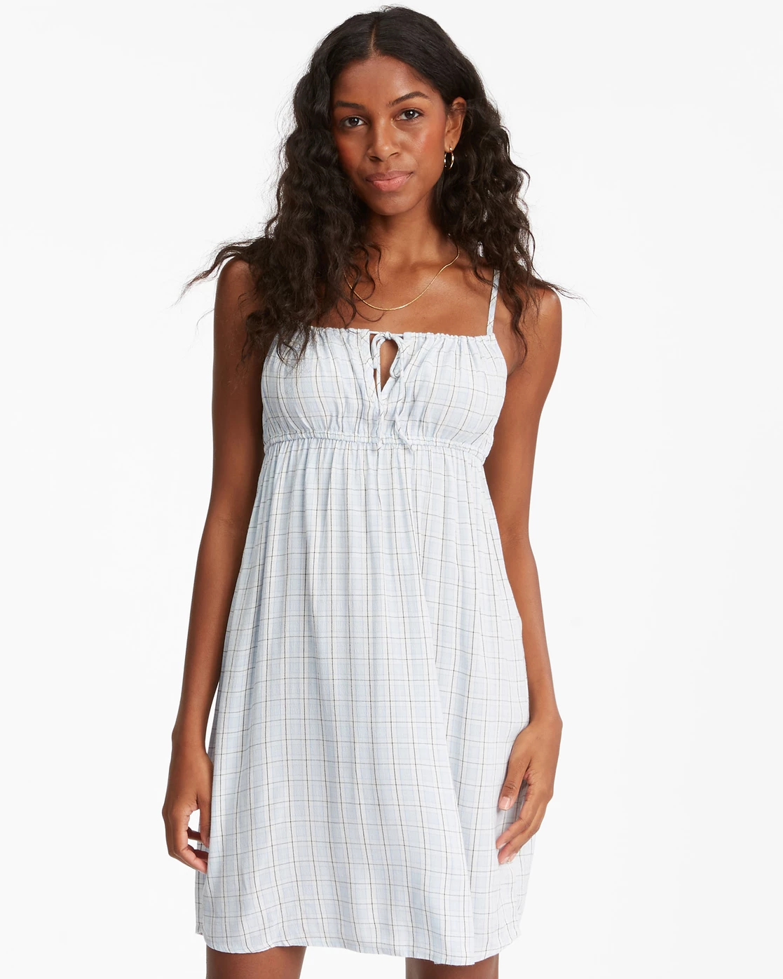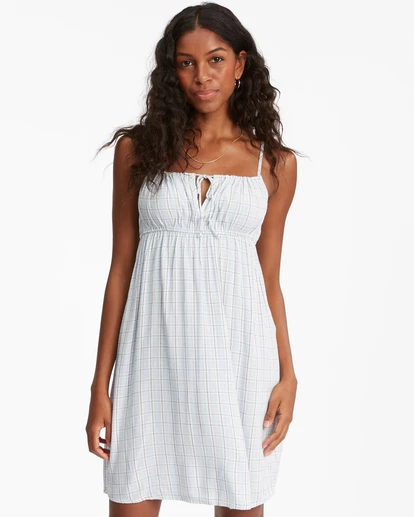 Need a pick me up? The Feelin Blue mini slip dress delivers high-vibe style for laid-back days. This women’s mini dress from our Sunny Side Up Collection offers a relaxed fit with a straight neck, spaghetti straps, and a front keyhole detail. The premium crinkle fabric feels lightweight and comfortable. And check out that original design? This modern take on a plaid print delivers perfect style for coffee dates, picnics in the park, and anywhere else the sun takes you.
