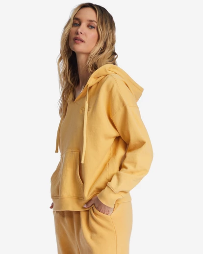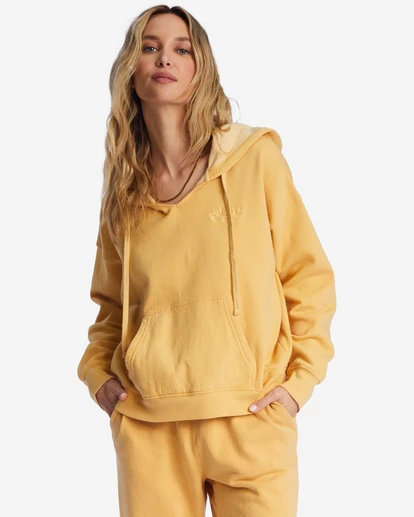 Made of blended cotton fabric, this comfy women’s hoodie has a relaxed fit with a V-neckline, a kangaroo pouch pocket, and logo embroidery. A vintage wash completes the lived-in look.