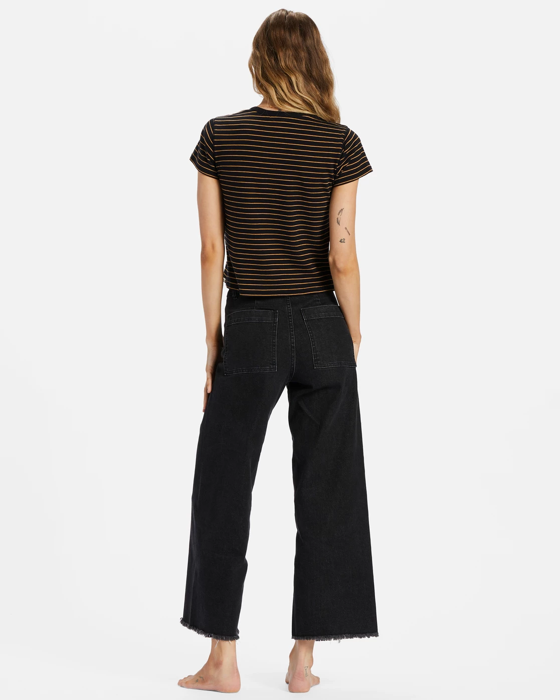 The Free Fall pant pairs a waist-accentuating high rise with a cool, wide leg. Made with blended cotton, the Essentials collection pant is fitted and flattering through the hips, with button-fly closure, a raw hem, and just enough stretch to keep them all-day comfy.