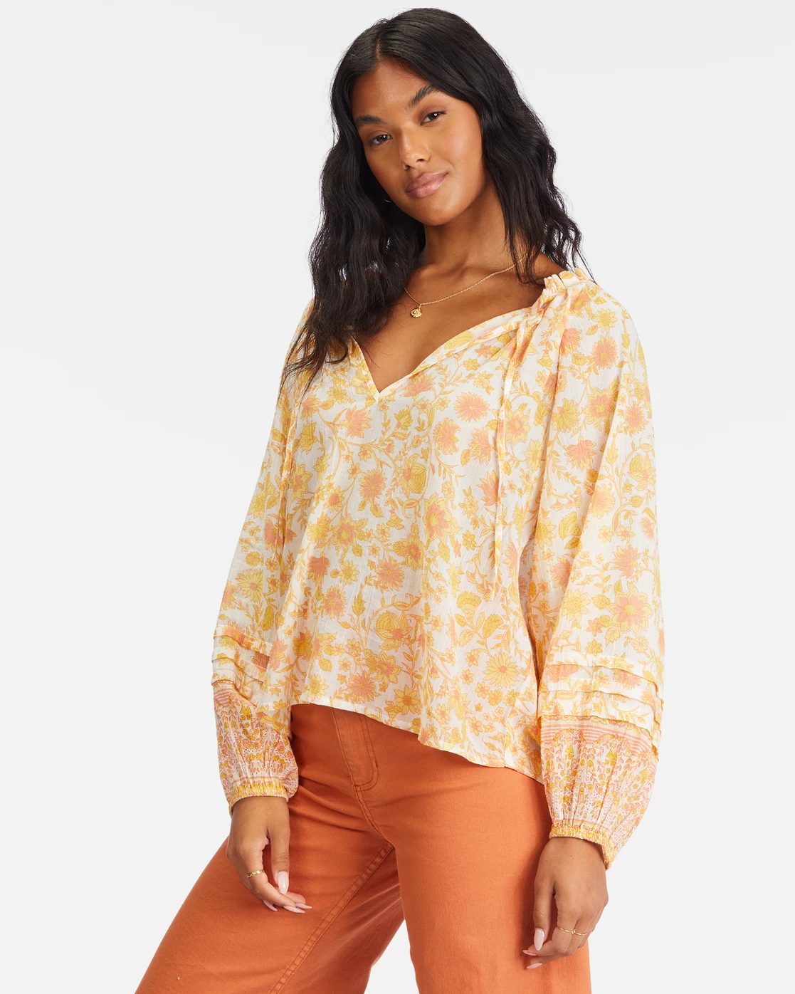 Made with lightweight cotton gauze, the Free Heart is a romantic top featuring a relaxed shape, long blouson sleeves, and a ruffled V-neck with ties. This flowy blouse from our Stories From The Sun collection is a boho-inspired beauty perfect for any occasion.