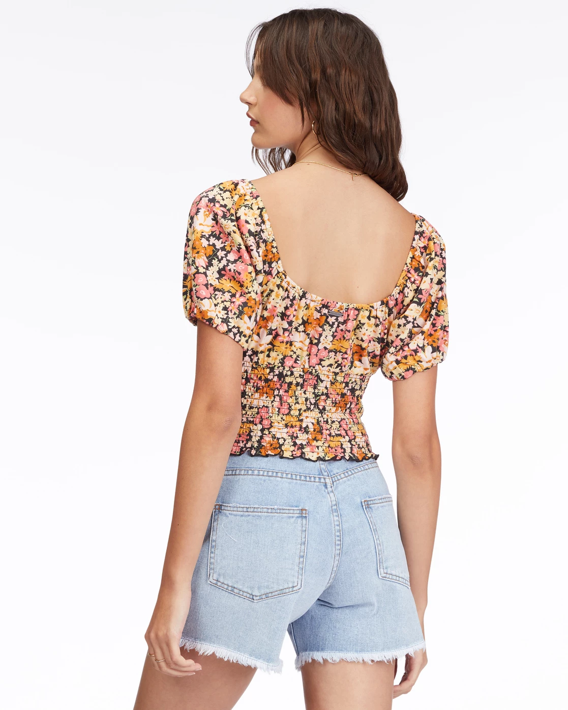 Billabong Get Along Puff Sleeve Top BLACK MULTI (bml)