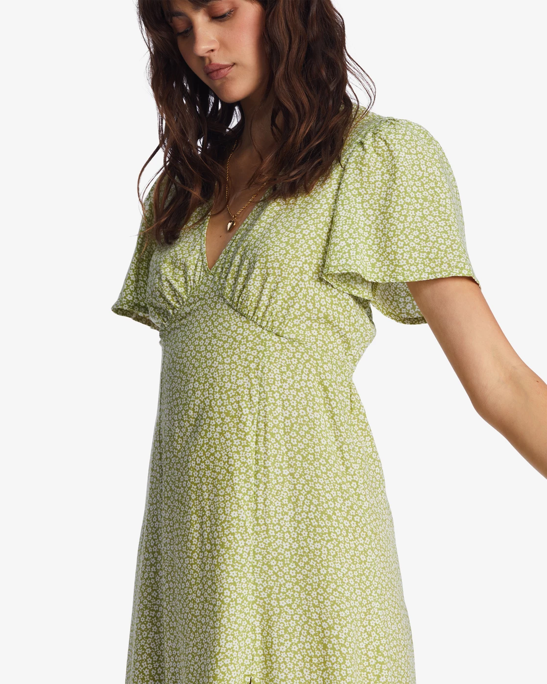 With its deep V-neck, flutter sleeves, and flirty side slit, this fitted mini dress will quickly reach favorite status.