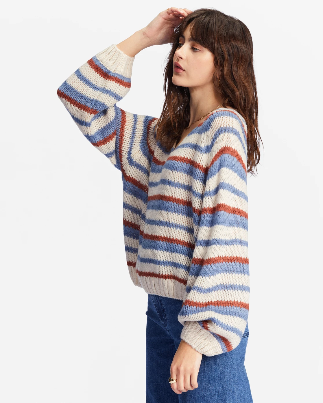 Styled with a V-neck and a timeless stripe design, the No Brainer sweater is the easiest choice you’ll have to make. This cozy women’s pullover has a super relaxed fit that delivers a perfectly laid-back look and feel. Wear it with jeans or layer it over your bikini.