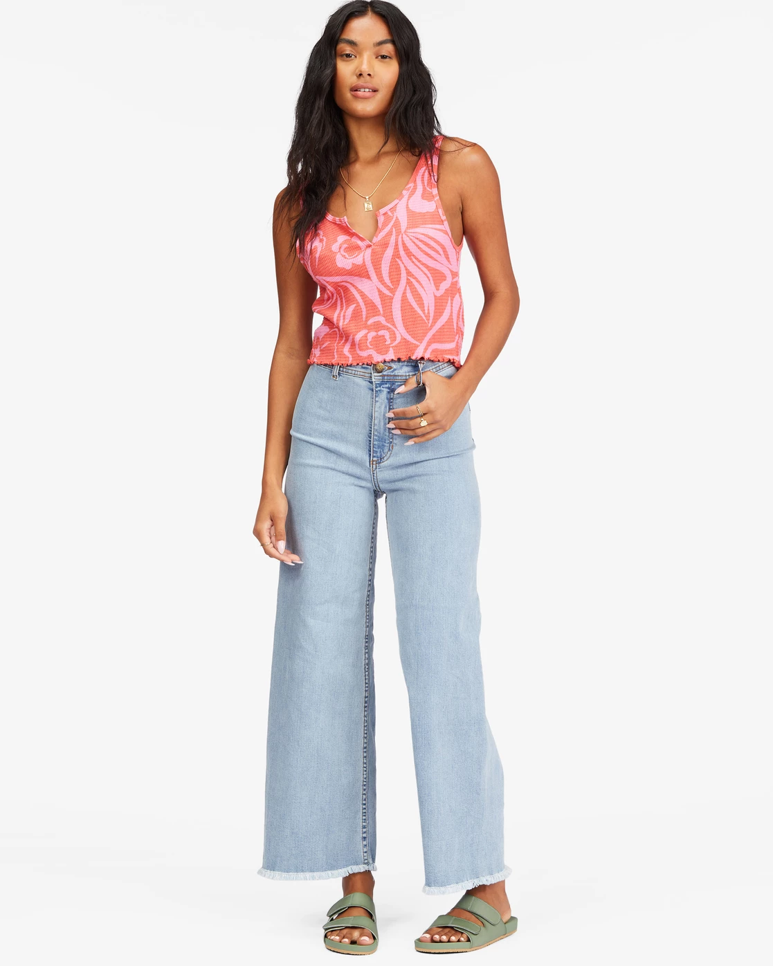 The Notch tank top delivers a timeless tank with a laid-back twist. This No End To Summer collection knit top features a bold print on stretchy ribbed fabric, plus a fitted shape and a V-split at the neck. Pair it with your cut-offs for perfect beachy style.