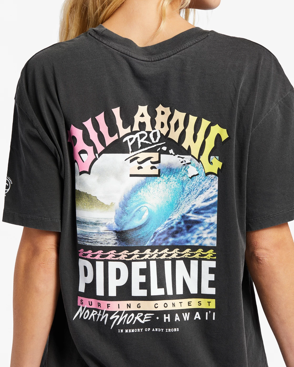Capture the energy of Pipe and this iconic competition with the Pro Pipeline official event tee. Featuring poster artwork on the left chest and back, this loose-knit cotton jersey tee has an oversized fit and a pigment dye to give it a well-worn look.