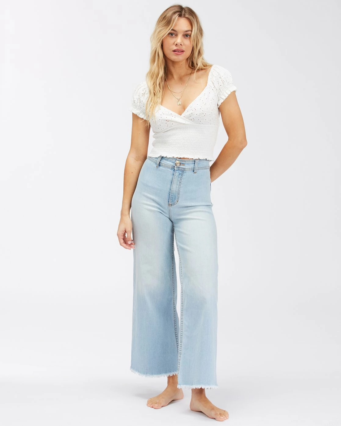 It’s time to air out your essentials. Add a breath of freshness to your everyday staples with the Spring Air short sleeve knit top. This pretty women’s shirt is fitted throughout with smocking at the waist and puff sleeves. Cotton eyelet fabric adds a feminine edge with soft detailing at the bust.
