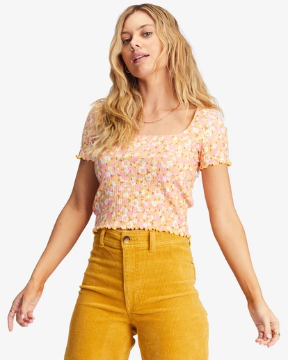 The Squared Away Knit Top from our Castles In The Sand collection is an everyday staple with a groovy spirit. Made in a soft ribbed knit, this women’s bodycon top features a retro checker print, a scoop neck, and baby ruffles at the hem.