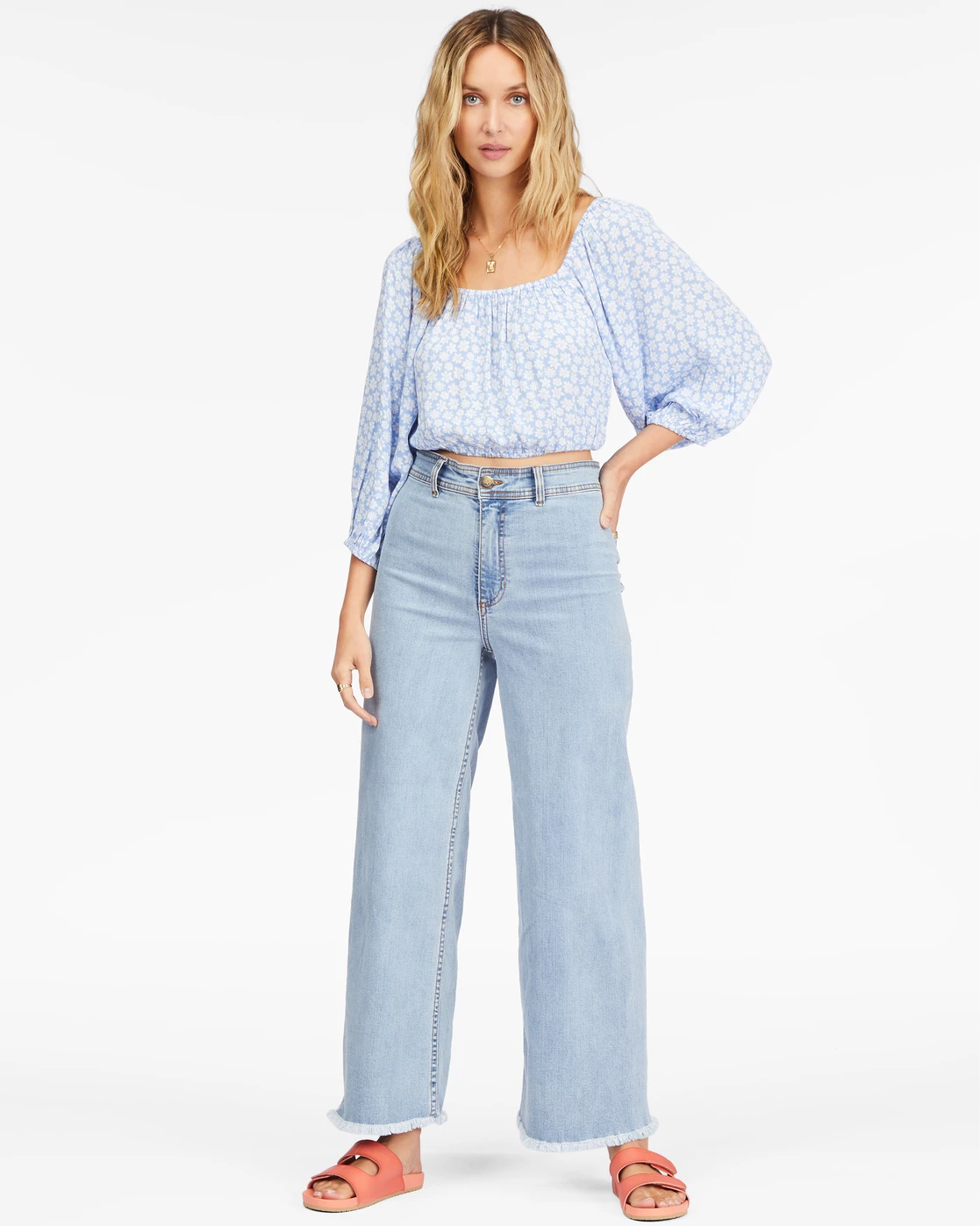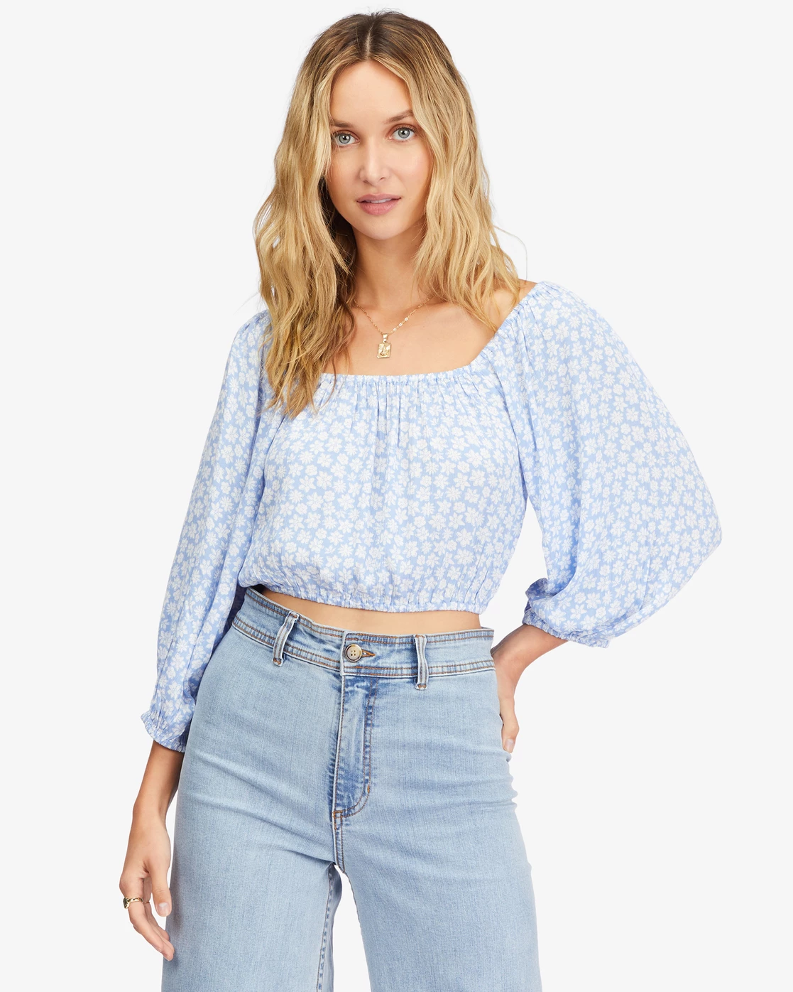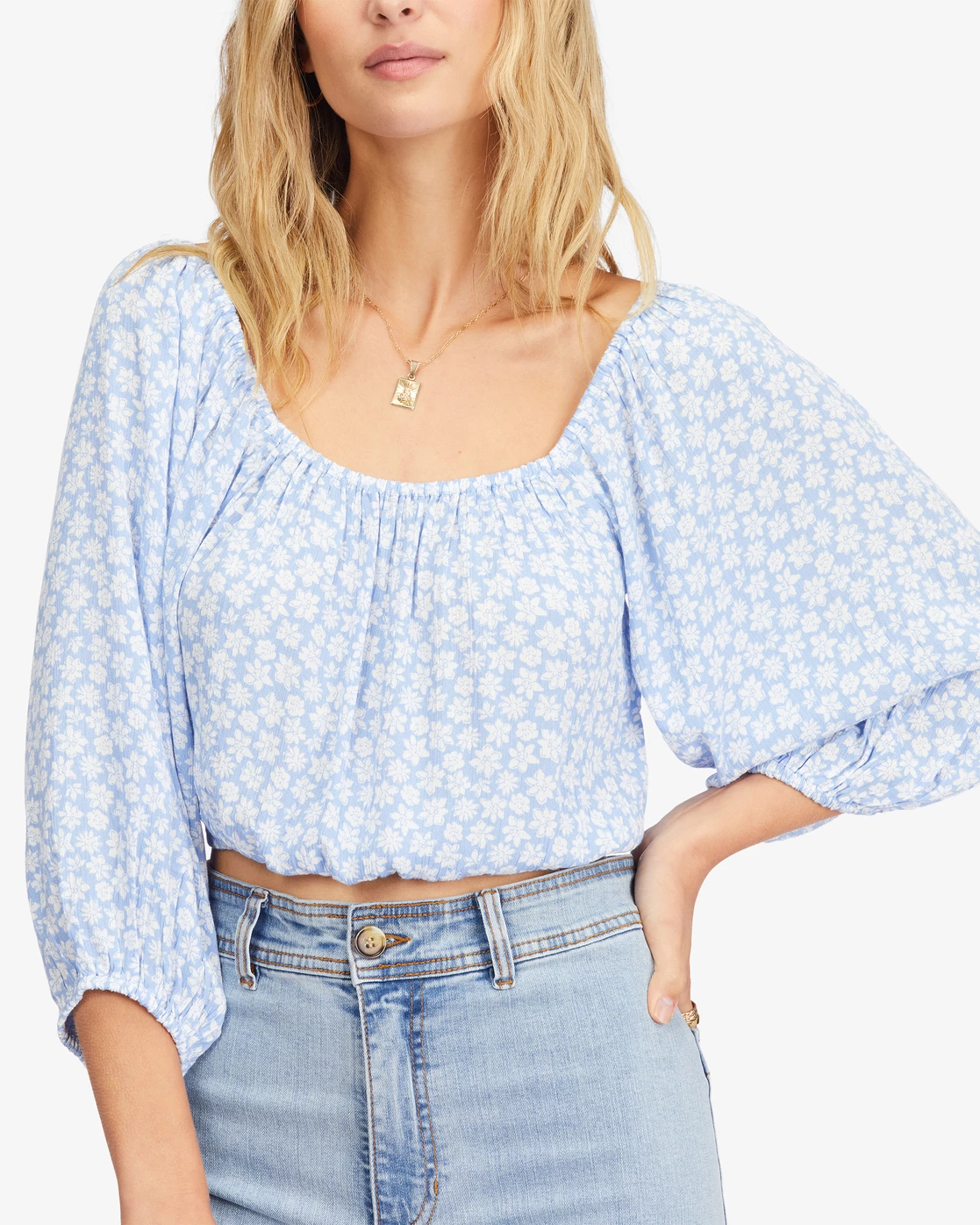 Made with lightweight crinkle fabric, the Sun City 2 crop top brings on the vacay vibes with a bold print and a warm-weather feel. This Sol Chasin cropped top features cute puff sleeves that can be worn on or off the shoulder. Style yours with swim or anything high-waisted.