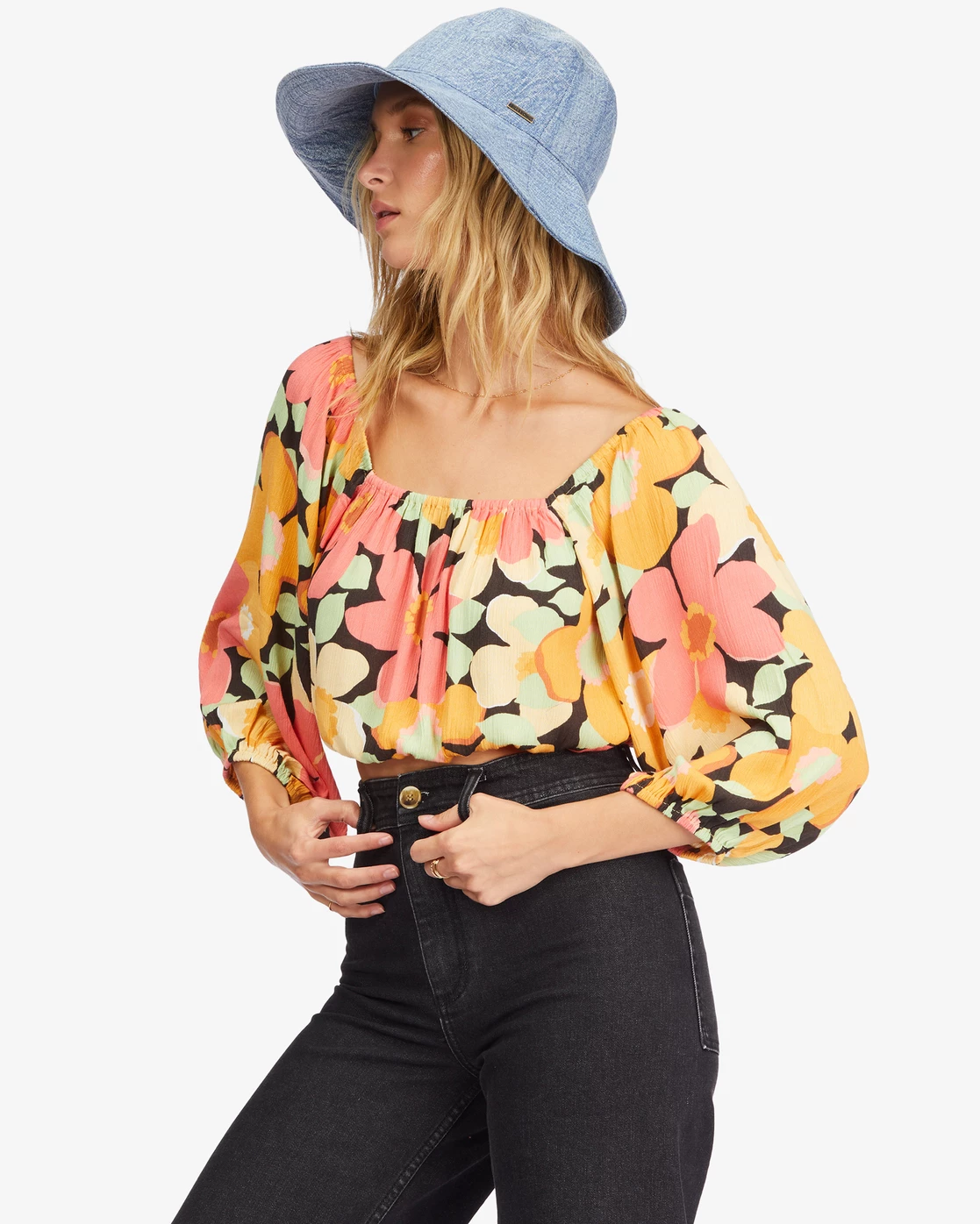 Made with lightweight crinkle fabric, the Sun City 2 crop top brings on the vacay vibes with a bold print and a warm-weather feel. This Sol Chasin cropped top features cute puff sleeves that can be worn on or off the shoulder. Style yours with swim or anything high-waisted.