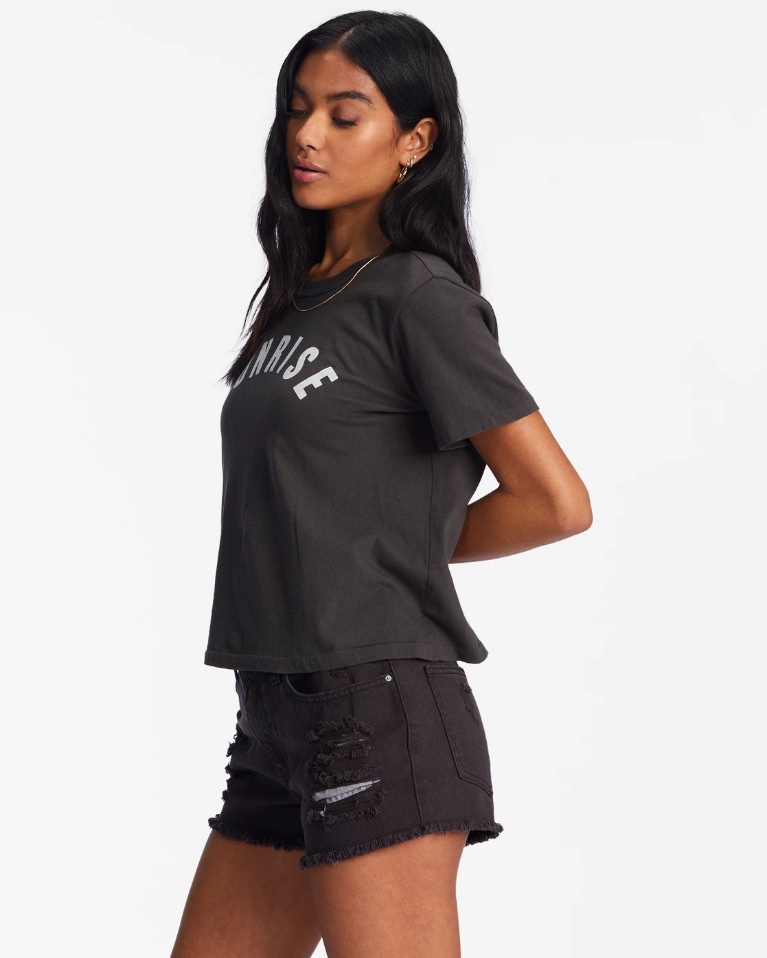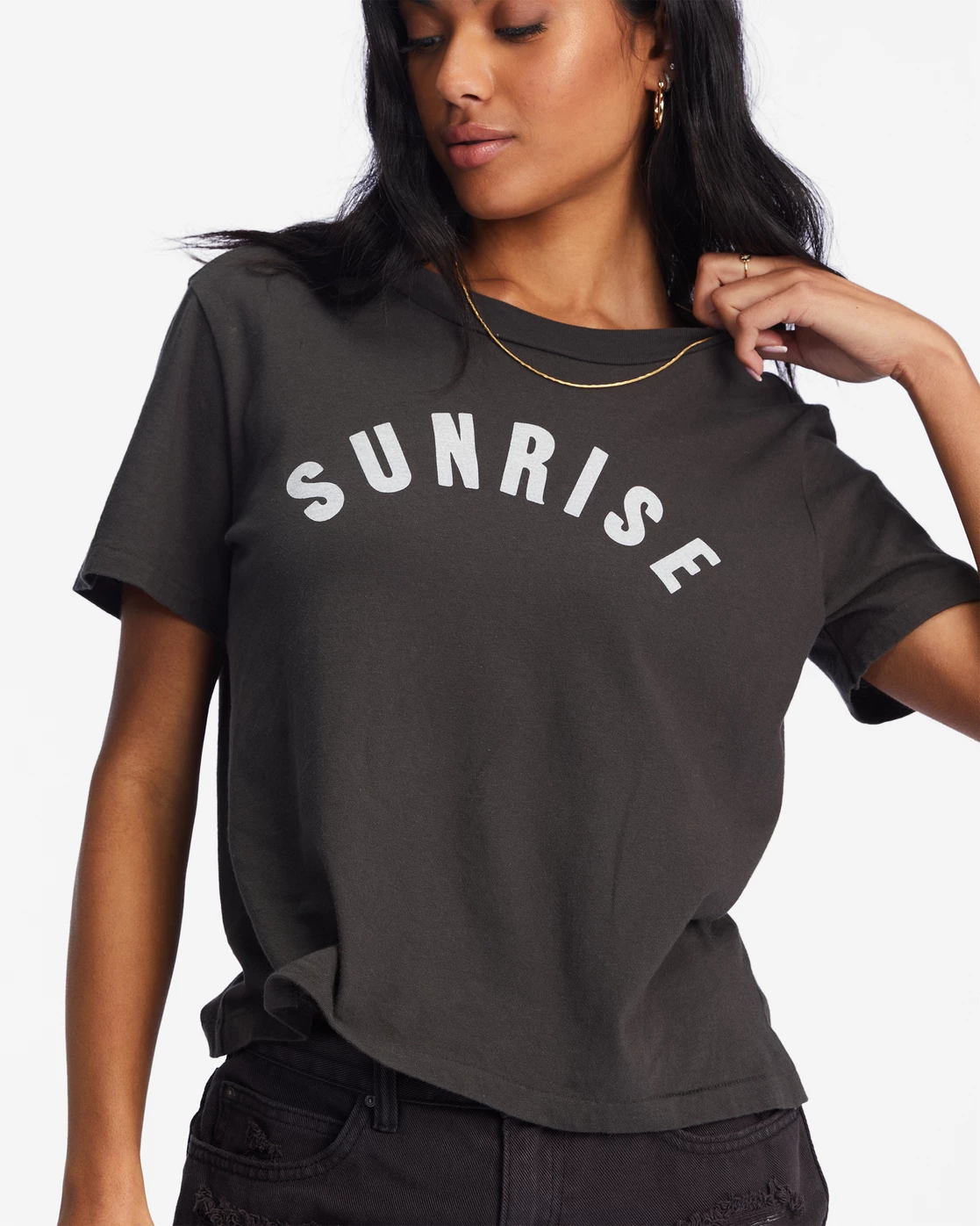 Made in premium cotton jersey, the Sunrise To Sunset Graphic Rockers T-Shirt is cut in a vintage-inspired fit that offers a slightly boxier fit like our fave tees from decades past. This women’s crewneck tee features screen print graphics and a garment wash for extra softness.