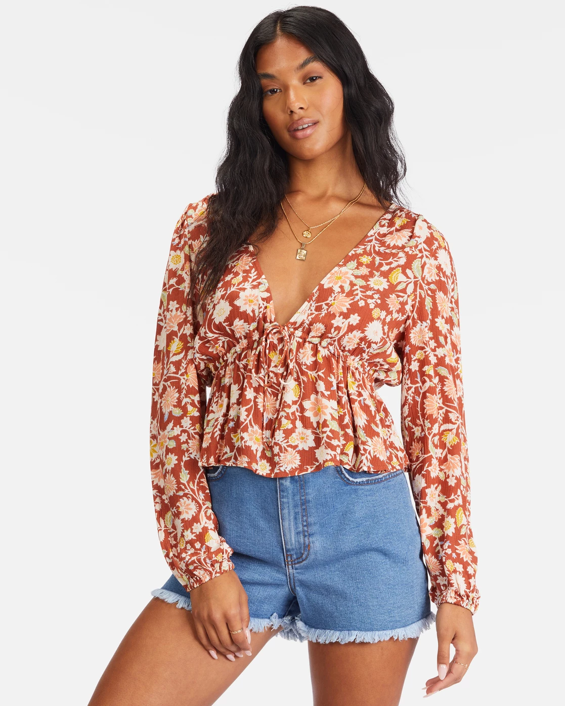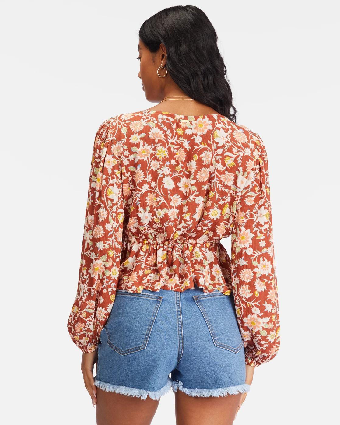 Billabong Time Goes By Long Sleeve Crop Top RED CLAY (rcl)