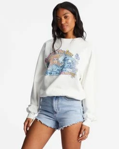 Billabong Here We Go Graphic Crewneck Sweatshirt ANTIQUE WHITE (anw)