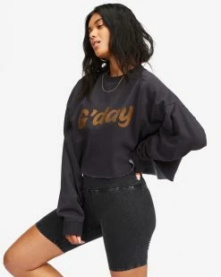 Billabong Hey Gday Cropped Crewneck Sweatshirt OFF BLACK (ofb)